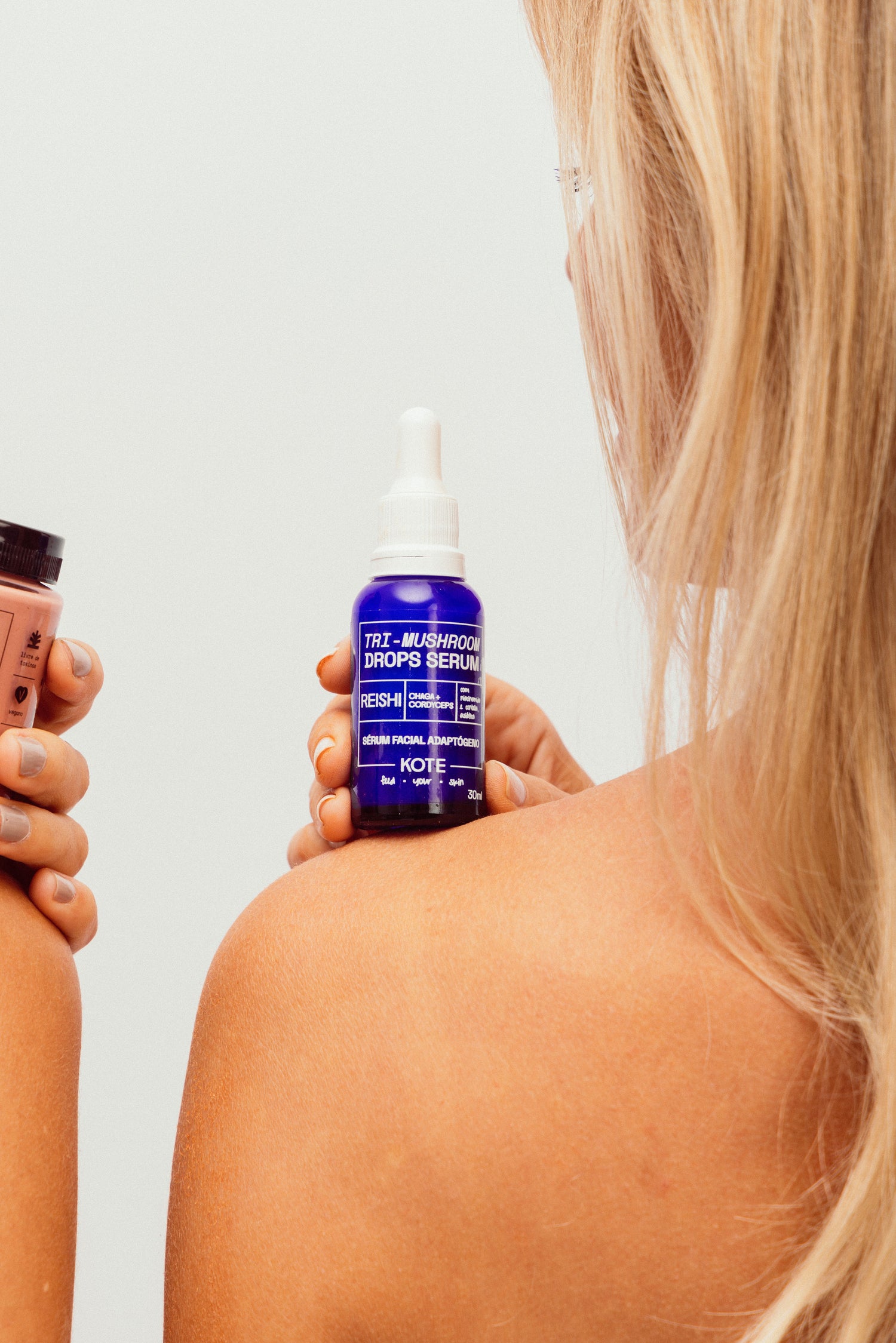 - Sérum Facial Tri-Mushroom: sérum com três adaptógenos potentes que acalmam, equilibram e restauram a pele. Atua na redução de poros, controle da oleosidade, uniformização do tom e textura, além de proteção contra os danos dos radicais livres.