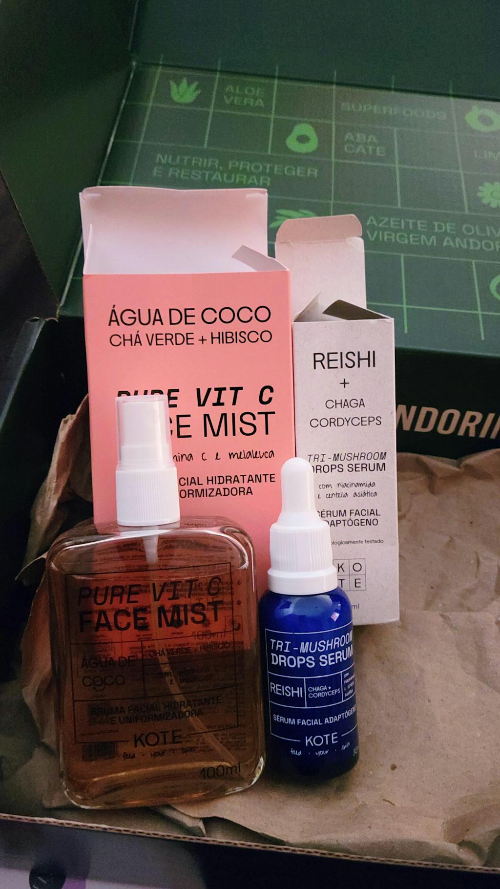 Hidrolato de lavanda, caprilato de coco, glicerina, niacinamida, triglicerídeos do ácido cáprico/caprílico, óleo de jojoba, celulose microcristalina, tintura hidroalcóolica de cogumelo chagas, tintura hidroalcóolica de cogumelo cordyceps, tintura hidroalcóolica de cogumelo reishi, ácido lático, óleo essencial de lavanda, álcool de cereais, acetato de tocoferol, pentilenoglicol, caprililglicol, goma xantana, tintura de centella asiática, goma de celulose, etilhexilglicerina, tocopherol.